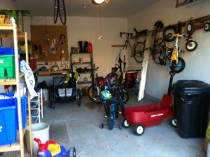 I have seven bikes in my garage (four adult, three kid). And two tricycles. And a ride-on toy. And two running strollers. And a double stroller. And an umbrella stroller. And a wagon. There is no room for a car (we’re driveway-parkers) because we have too much ‘stuff’. Yet I am not someone who places a high value on ‘stuff’. We have a car that’s rusty, couches that are well-worn, and I don’t care if I’m wearing Name Brands or Joe Fresh. But somehow I have fallen into the trap of excess.